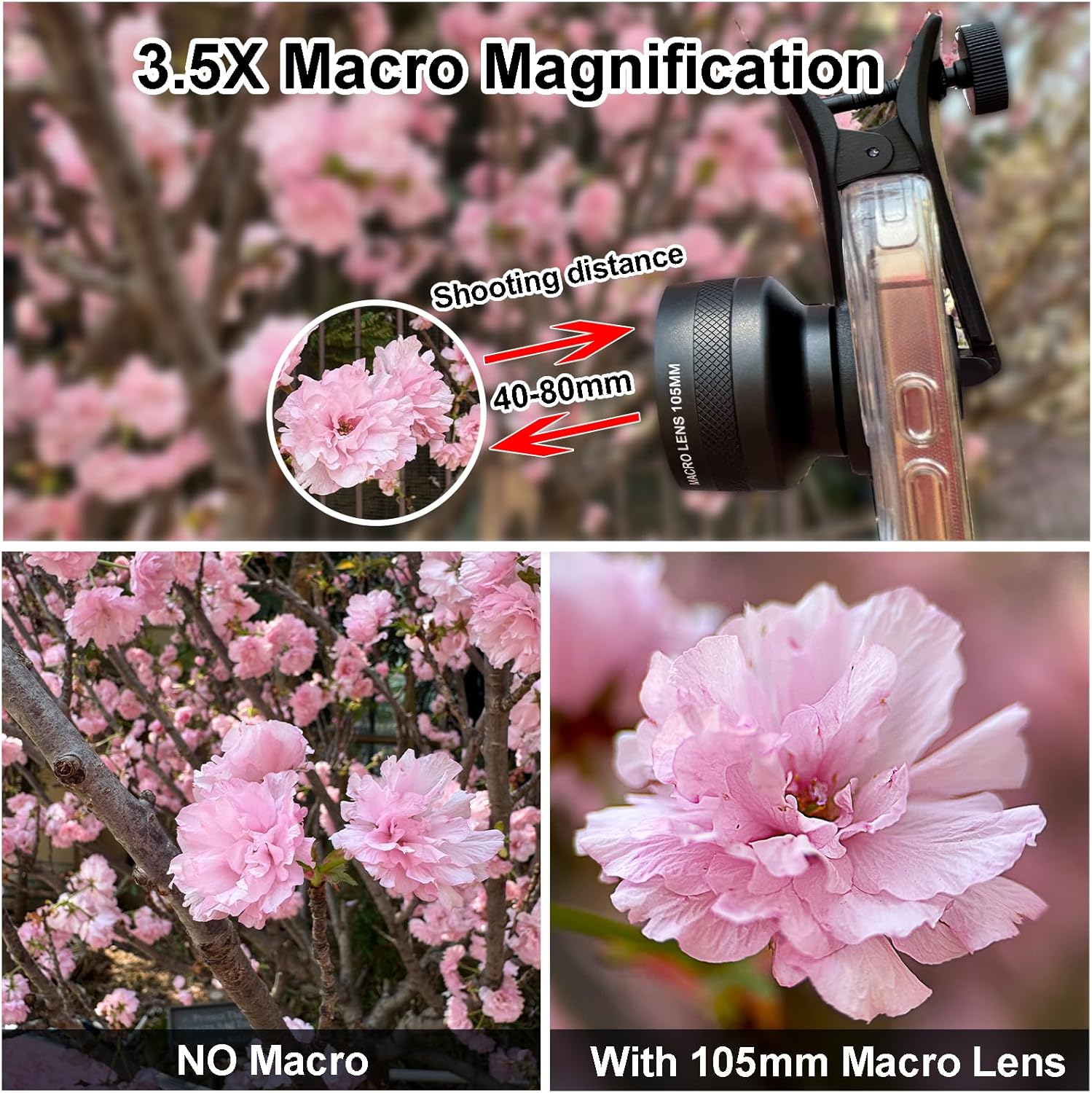 【Easy to Use】Simply attach the lens to the 17mm clip, mount it on your phone’s main camera, and start shooting. For optimal performance, ensure the macro mode on your phone’s camera is turned off before use and please shoot at a distance of about 40-80mm away from the subject (Note: The shooting distance may vary with different cell phones).
