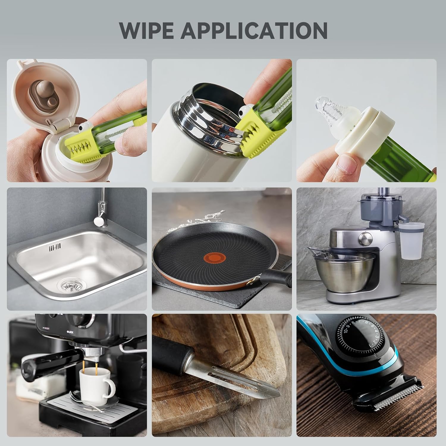 【Wide Useful】This bottle brush head can rotate 360 degrees to use different brushes, which is convenient to clean crevice, such as cup lid gap, coffe and tea cups, juicers, air fryers, toasters, sterilizers, grater, tiles gap, baseboards, bottles, filters, cup bottoms, feeding bottles, thermos cup, and more.