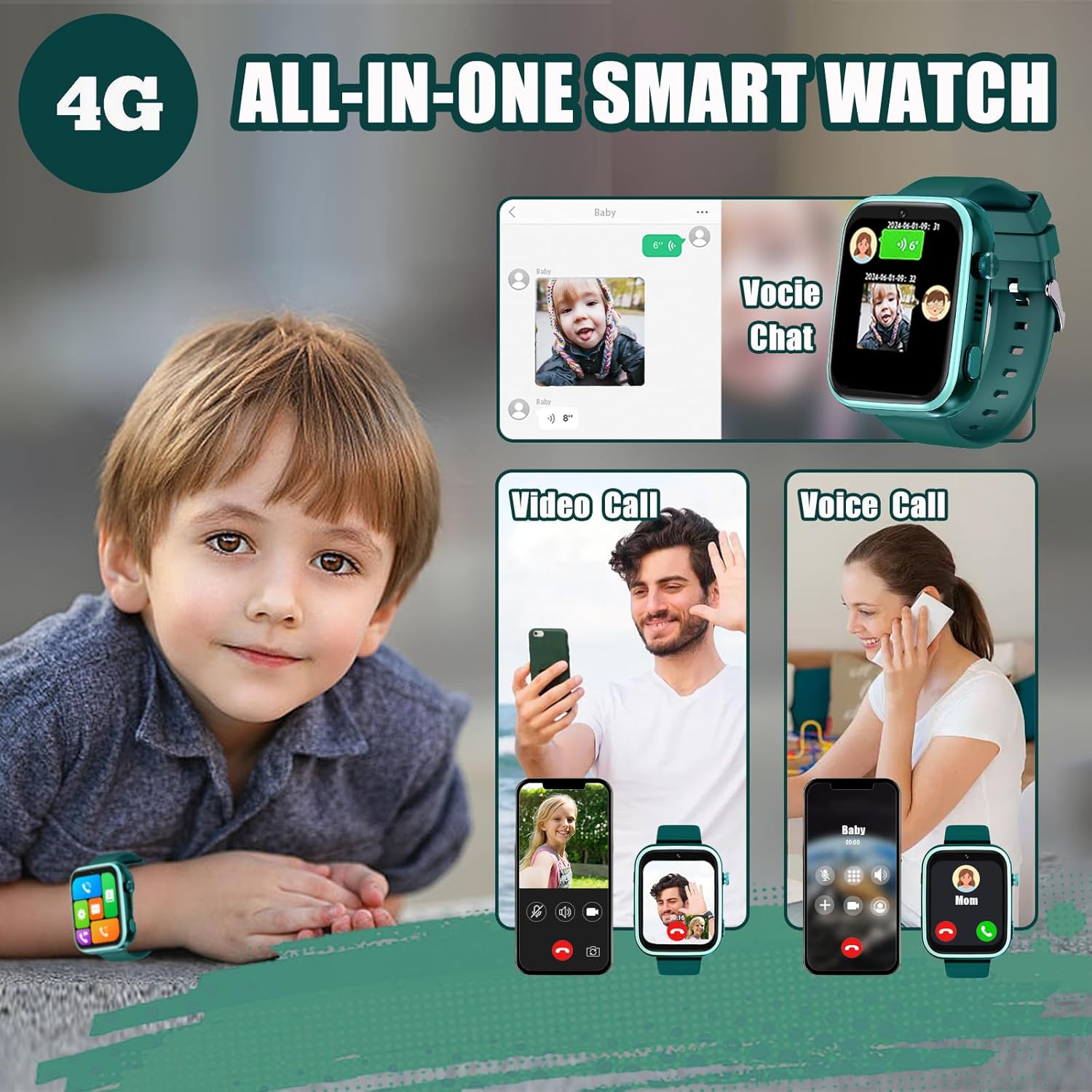ALL-IN-ONE 4G SMART WATCH FOR KIDS : Our latest generation children smartwatch combines all the essential functions for kids: 4G calls, SOS, GPS positioning, video call, voice chat,camera, voice recorder, music, learning apps, alarm clock, school mode, calendar, pedometer, and more.It’s the every-day safety essential that gives kids and parents confidence