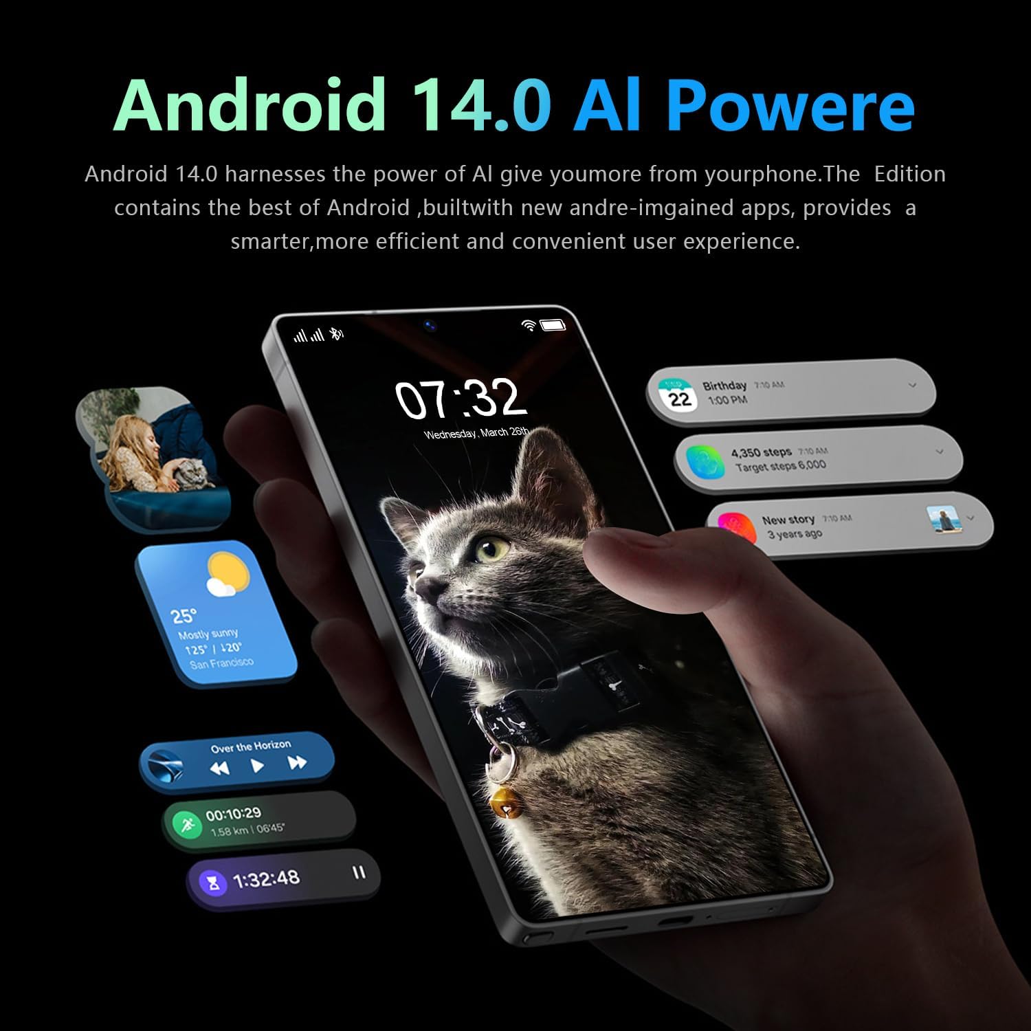 【6800mah Long Battery 】Android 14 smartphone is equipped with an above-average 6800mAh battery, which lasts longer than you might expect-.Outdoor recreation stays powered up for long periods of time Intelligent and thoughtful AI battery management can reduce excessive cache to save more power and then to be longer standby time.