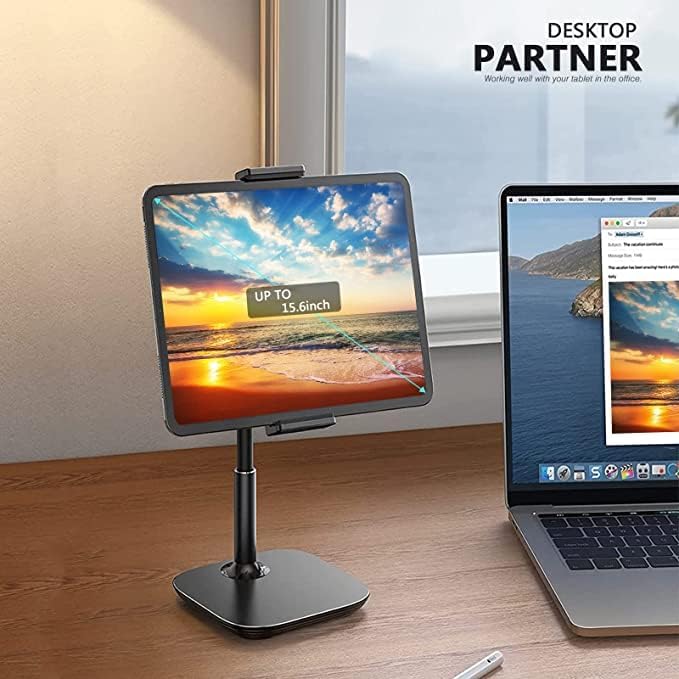 【Heavy Duty Base】This stand holder for ipad features a reinforced tablet clamp,a thickened all-metal support rod,and a heavy duty base which weights 1.76lb with an anti-slip pad.This ensures stability when touching with your device.