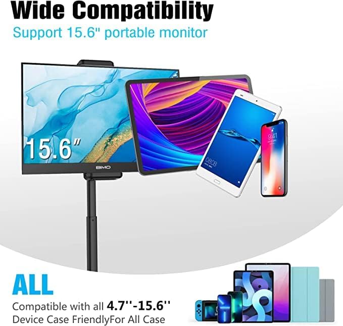 【Tip】This clamp of stand holder for ipad can max extend 8.85in,compatible with screen devices ranging from 4.7″ to 15″,not 15.6”,pls note that before you buy it.