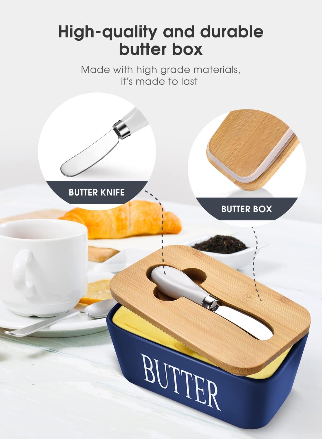 【BUTTER DISH WITH LID UPDATED VERSION】The butter dish with lid for countertop has a groove that perfectly fits the knife, integrating the butter knife, and butter dish. Don’t worry about not having a butter knife when you want to cut some butter. The upgraded lid is more durable than the previous lids. This butter dish with lid is perfect for use at the dining table and perfect for home decor.