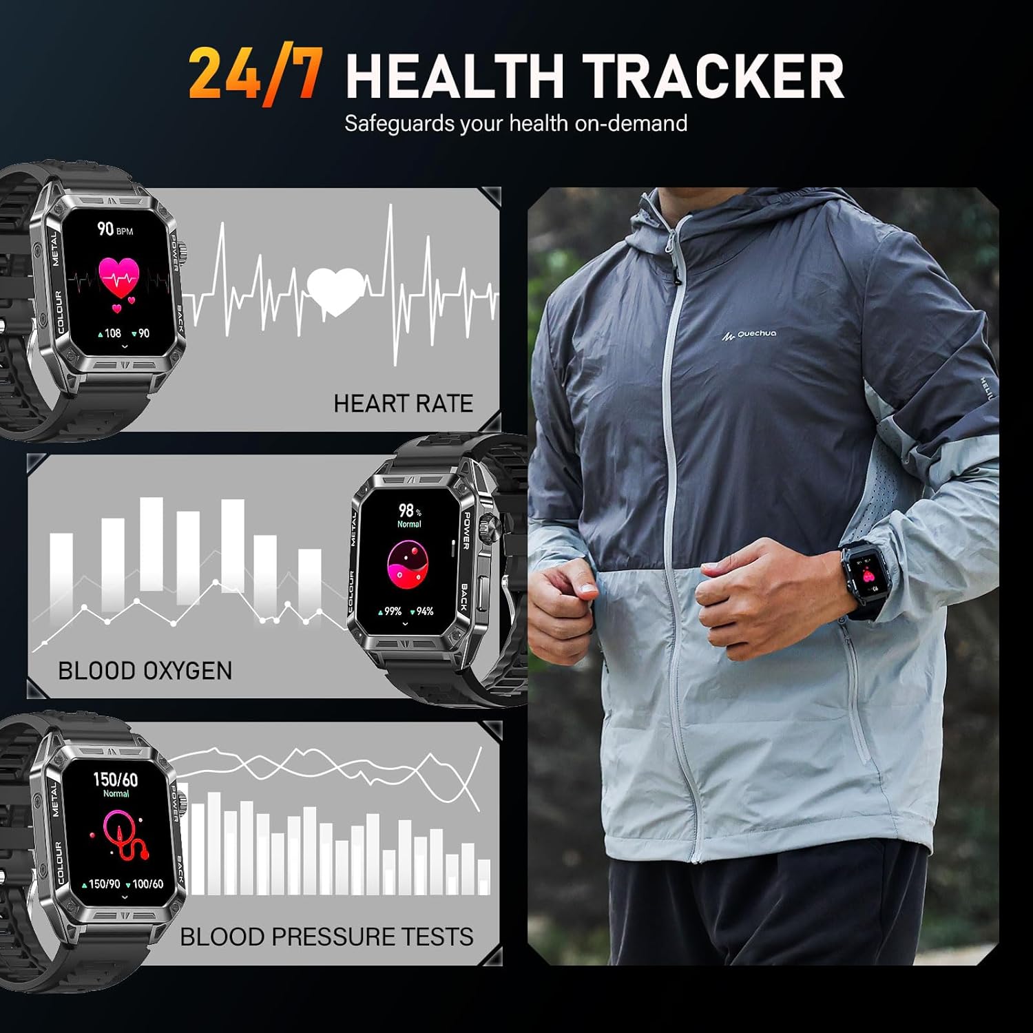 【MADE FOR OUTDOOR EXPLORE】- EIGIIS smart watches is military standards, military smart watch has shockproof, dustproof, magnetically resistant, IP67 waterproof and designed for professional outdoor exercise. The rugged smart watch is a fully enclosed shell design, making it rugged, it’s a must-have for outdoor sports and exploring!