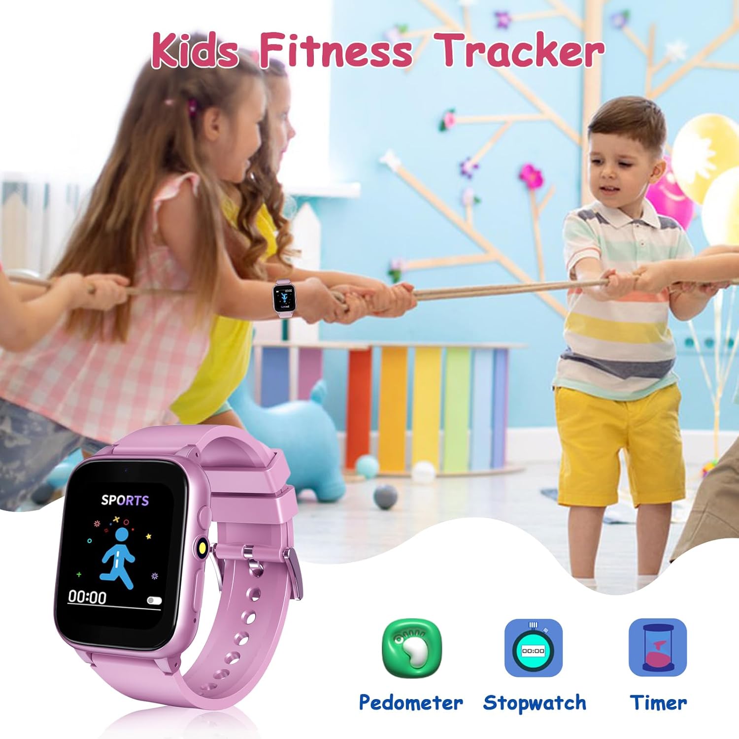 ⌚ SMARTWATCH FOR KIDS WITH SCREEN PROTECTORS:Our kids’ smartwatch features a 1.69-inch IPS HD color touch screen and includes two screen protectors for extra durability. Equipped with a high-quality HD camera, video andmusic player, 26 puzzle games, pedometer, voice recorder, parent control, and much more! It’s the perfect combination of fun, learning, and convenience for your child.