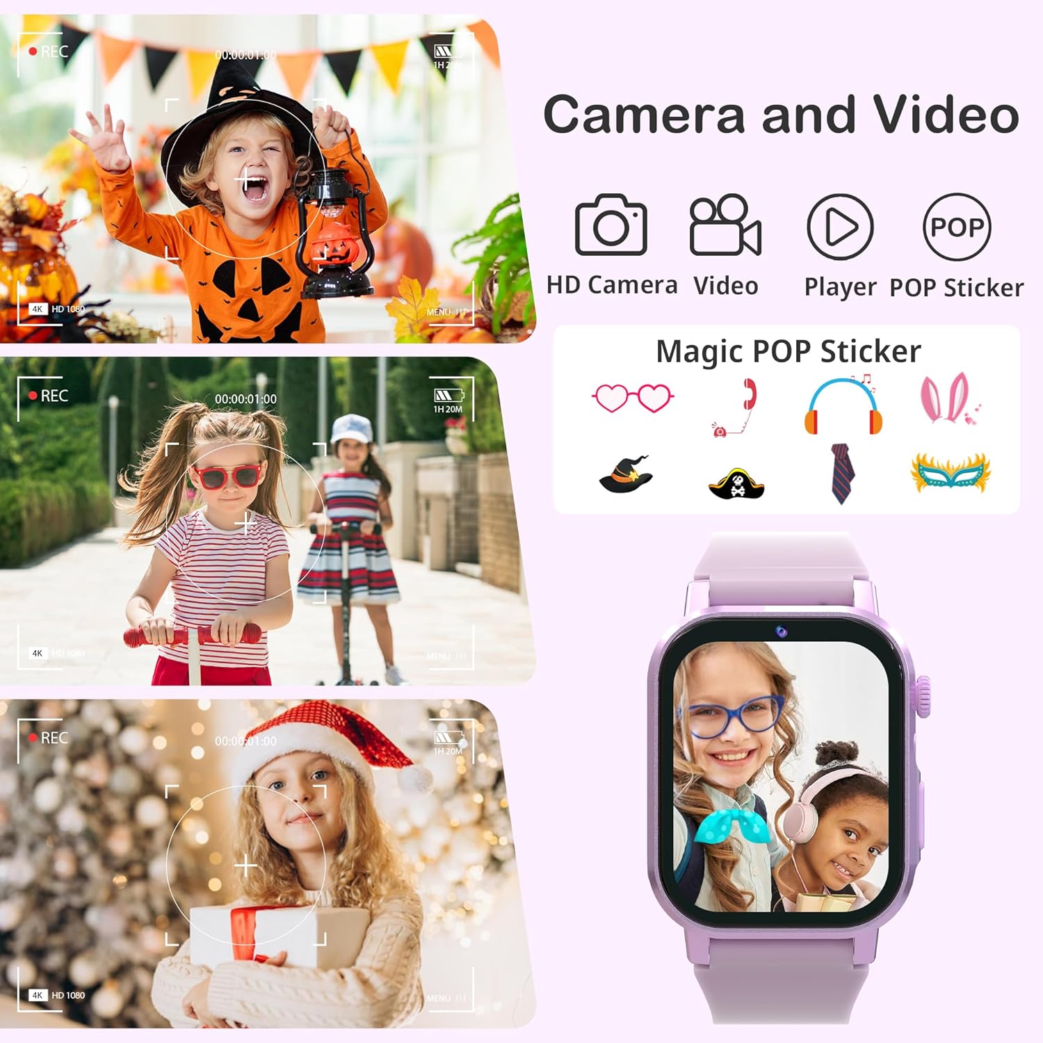 【HD Camera & Habit Tracking】Kids smart watches girls is equipped with magic camera. Children can take photos, selfie and video to capture their happy moments with family or friends. They can also enhance their photos by adding decorative stickers and creative borders, thereby making the imagery more engaging and fostering a love for photography in children. In the time tool, alarms can be set for events such as waking up, breakfast, lunch, sleeping,etc, to help children form good living habits, cultivate a sense of time, and enhance their self-discipline.
