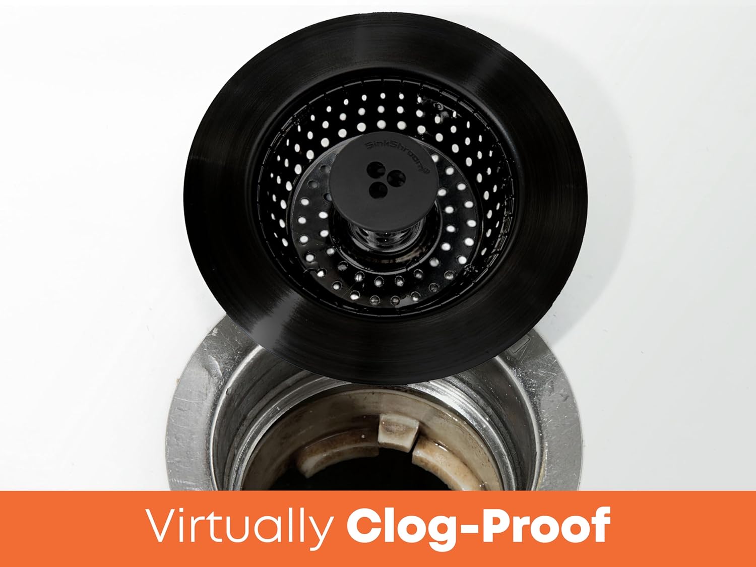 Transform your kitchen sink experience with the revolutionary Kitchen SinkShroom strainer basket. This innovative design features a unique hollow center cylinder that rises above the basket, making it incredibly easy to remove while preventing pots and dishes from blocking the drain. The cleverly engineered stainless steel construction, finished in sophisticated matte black, combines durability with style. What sets this strainer apart is its optimal hole placement – even as food particles collect in the basket, water continues to flow smoothly, preventing dirty dishwater from backing up. The versatile design fits virtually any kitchen sink drain or garbage disposal without requiring special tools for installation. As a 2019 Housewares Design Awards Finalist, this strainer proves its exceptional functionality with a built-in stopper feature for when you need to fill your sink. Say goodbye to constant drain clogs and hello to hassle-free kitchen cleanup with this thoughtfully designed sink accessory.