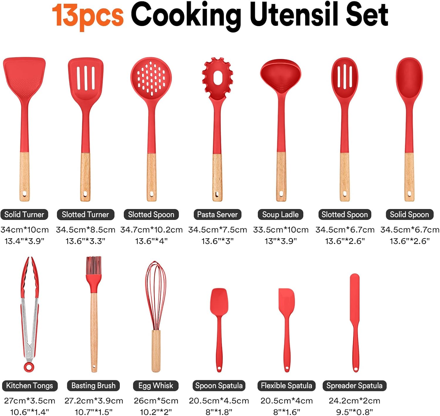 Versatile and Comprehensive: From the everyday kitchen spoons to the oil brush.This kitchen utensils set includes a wide range of silicone cooking utensils, gadgets, and essentials, providing you with everything you need for a variety of cooking tasks