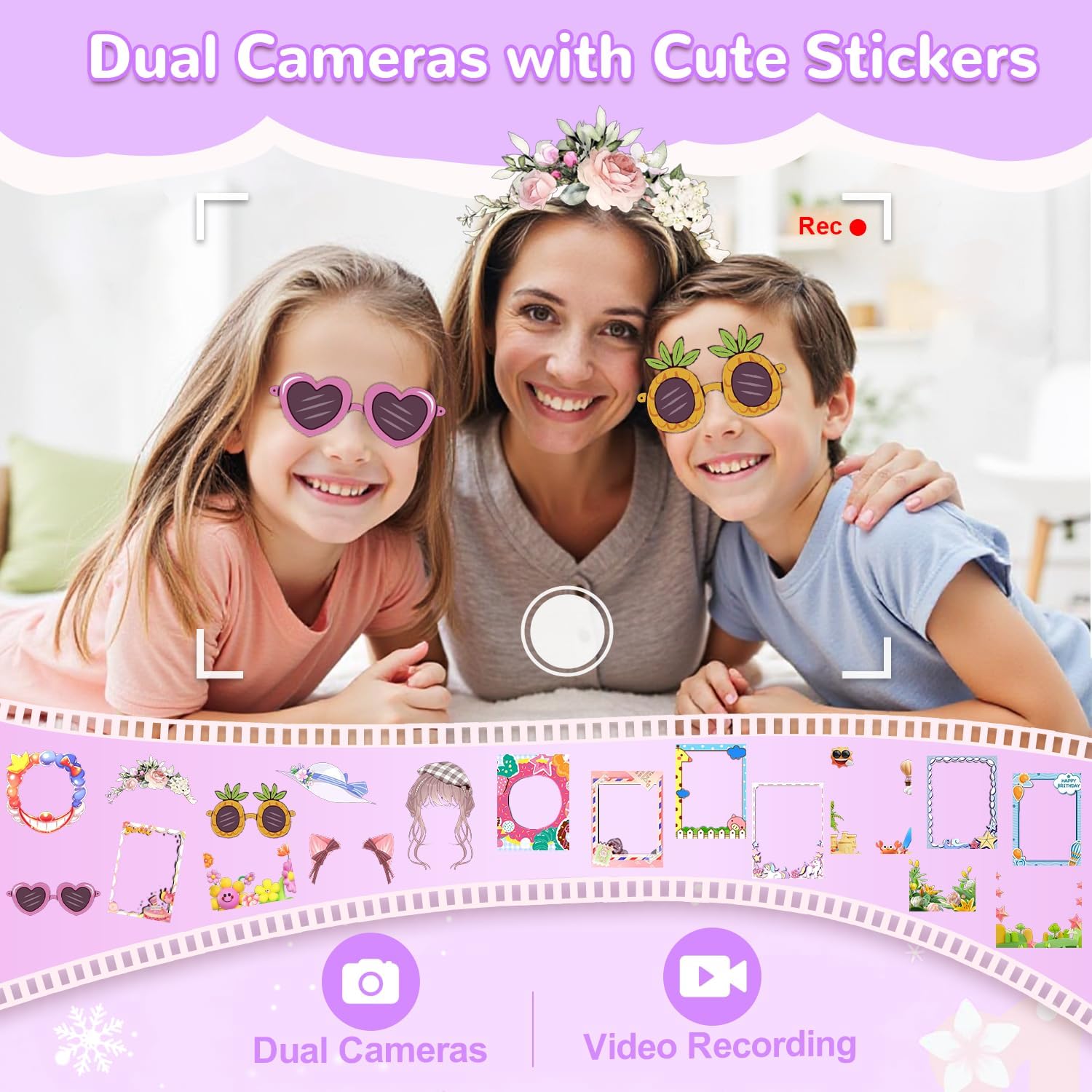 Dual Camera with Adorable Stickers: Kids cell phones support dual cameras to take pictures and video recording, just like a real smartphone. With 19 cute stickers, kids can pick their favorites to snap pictures and record videos, capturing precious moments and fun experiences with family and friends. It’s a great way to let their creativity shine!