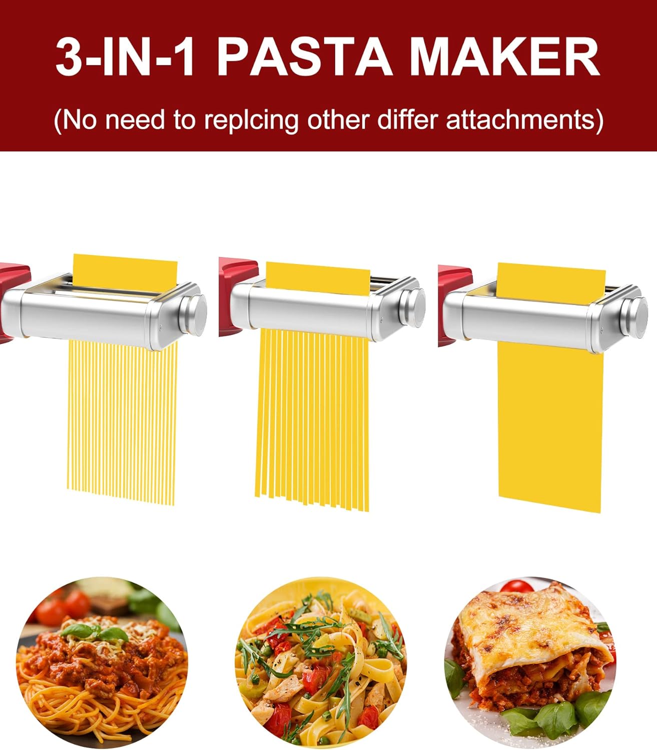 PERFECT GIFT FOR FOODIES -Our 3-in-1 pasta attachment is a time-saver and perfect holiday gift for anyone who loves to cook with their KitchenAid stand mixer. It’s quick at churning out piles of pasta for spaghetti, lasagna, or fettuccine, and it’s worth having for a better life! Ideal for holidays, birthdays, or any occasion. Comes with a 1-year warranty for your peace of mind.