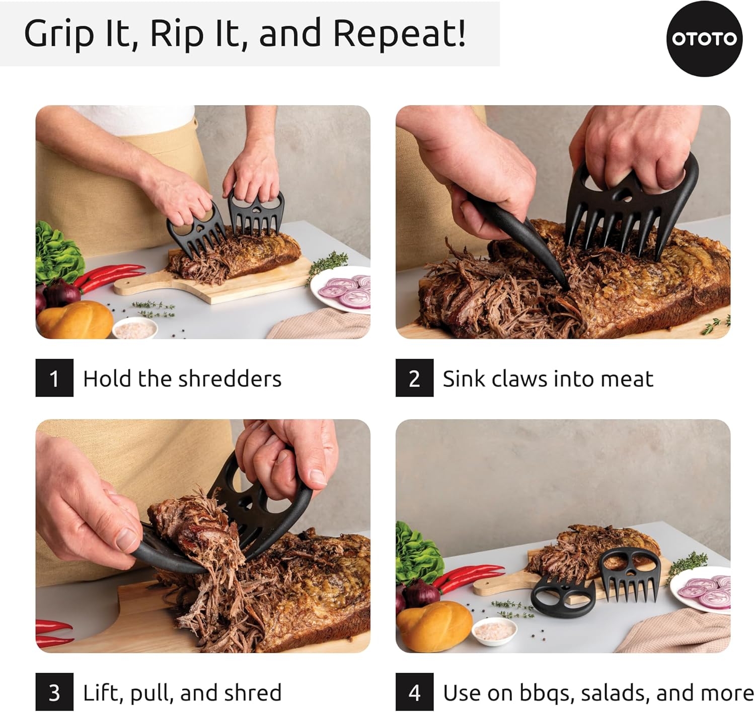 Grip, Rip, and Go! – Ergonomic design and clever eye-socket grips make shredding a breeze, whether you’re a kitchen novice or a seasoned pitmaster. Cleanup? Easy peasy – just toss them in the dishwasher!