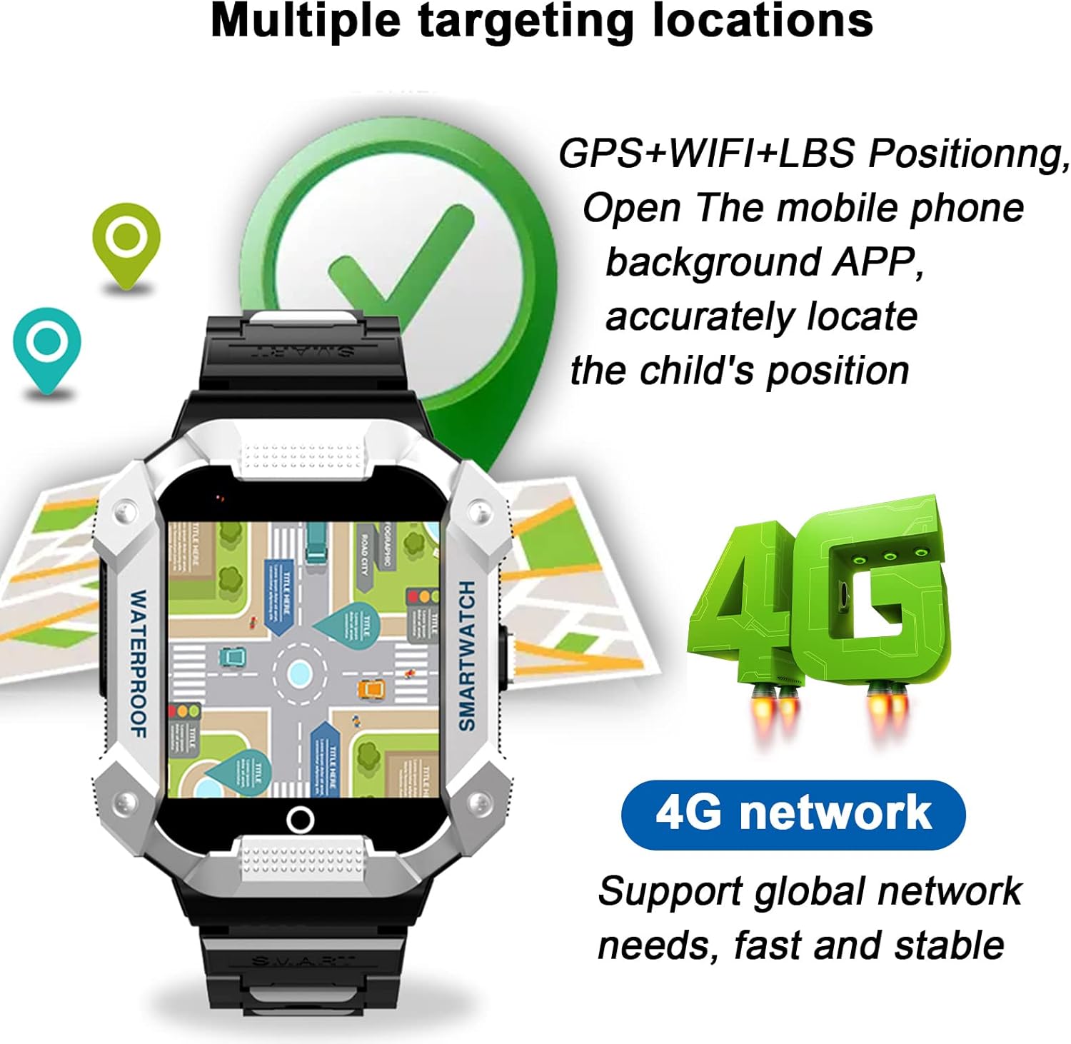 【2024 LATEST UPGRADE KIDS SMARTWATCH】The 4G Kids GPS Watch main functions include Real Time GPS Position, Two Way Call,SOS,Phone Book,Voice Message, Flashlight,Camera,Photo album,Alarm Clock,Class Mode,Safety Fence,Pedometer,Historical Route etc.This smart watch is a perfect Christmas,birthday Toy.