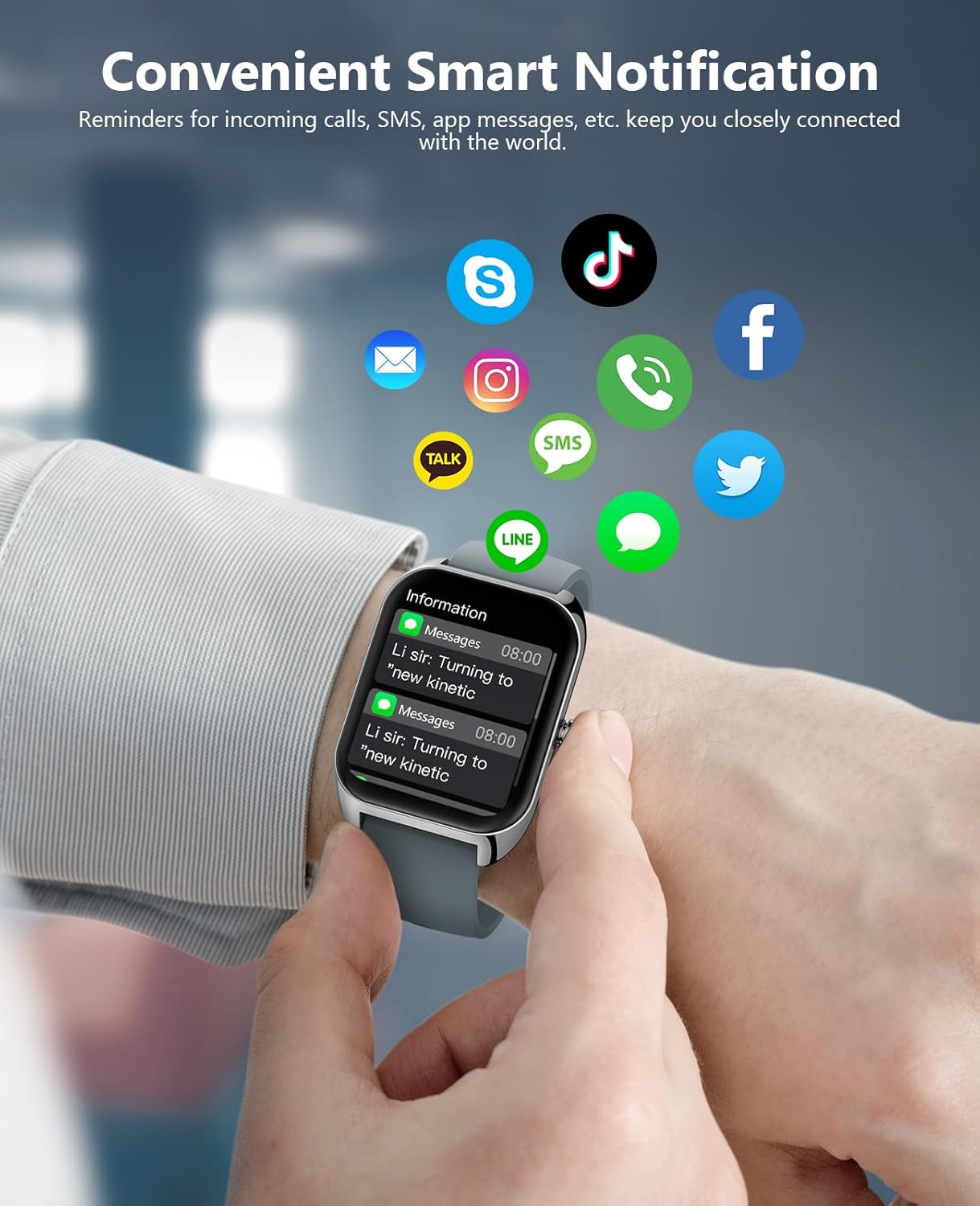 Bluetooth Calling, Voice Assistant, and Notifications: This smartwatch packs high-end mic and speaker tech to capture your voice clearly, minimize background noise, and deliver crystal-clear, immersive call quality. Beyond just voice calls, it supports intuitive voice assistant control – letting you easily access info, set reminders, and make calls with simple voice commands to boost your productivity. And it keeps you connected with seamless app notification sync, so you’ll never miss important alerts from your texts, Facebook, WhatsApp, Twitter, Instagram, and more. It’s the all-in-one communications companion to keep you dialed in.