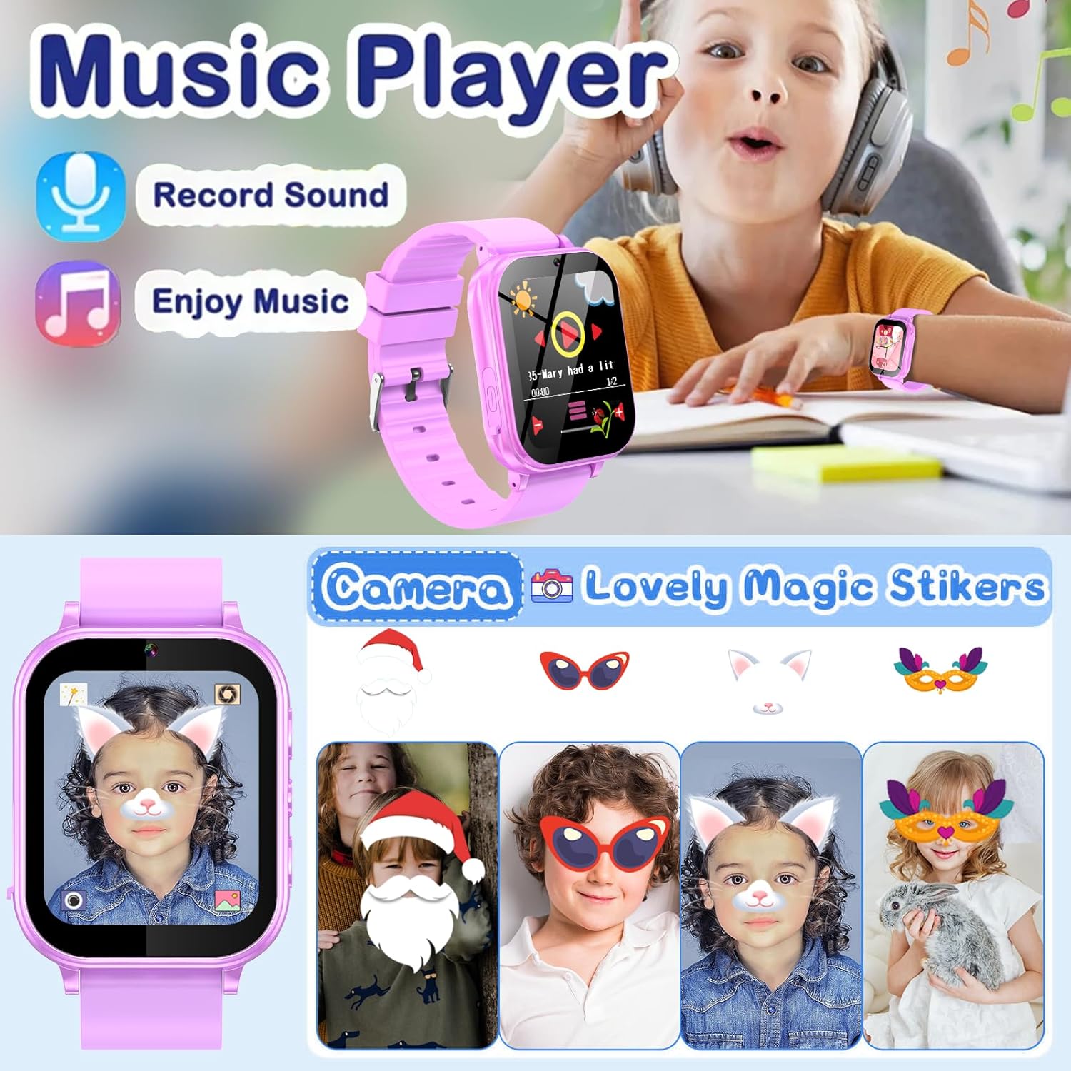 Music On-The-Go and Camera Function: Our smart watch allows kids to enjoy their favorite tunes anytime, anywhere. Whether at home, in the car, or during outdoor activities, they can groove to their favorite songs and rhymes with the touch of a button. With the built-in camera function, kids can capture and share their favorite moments with family and friend.