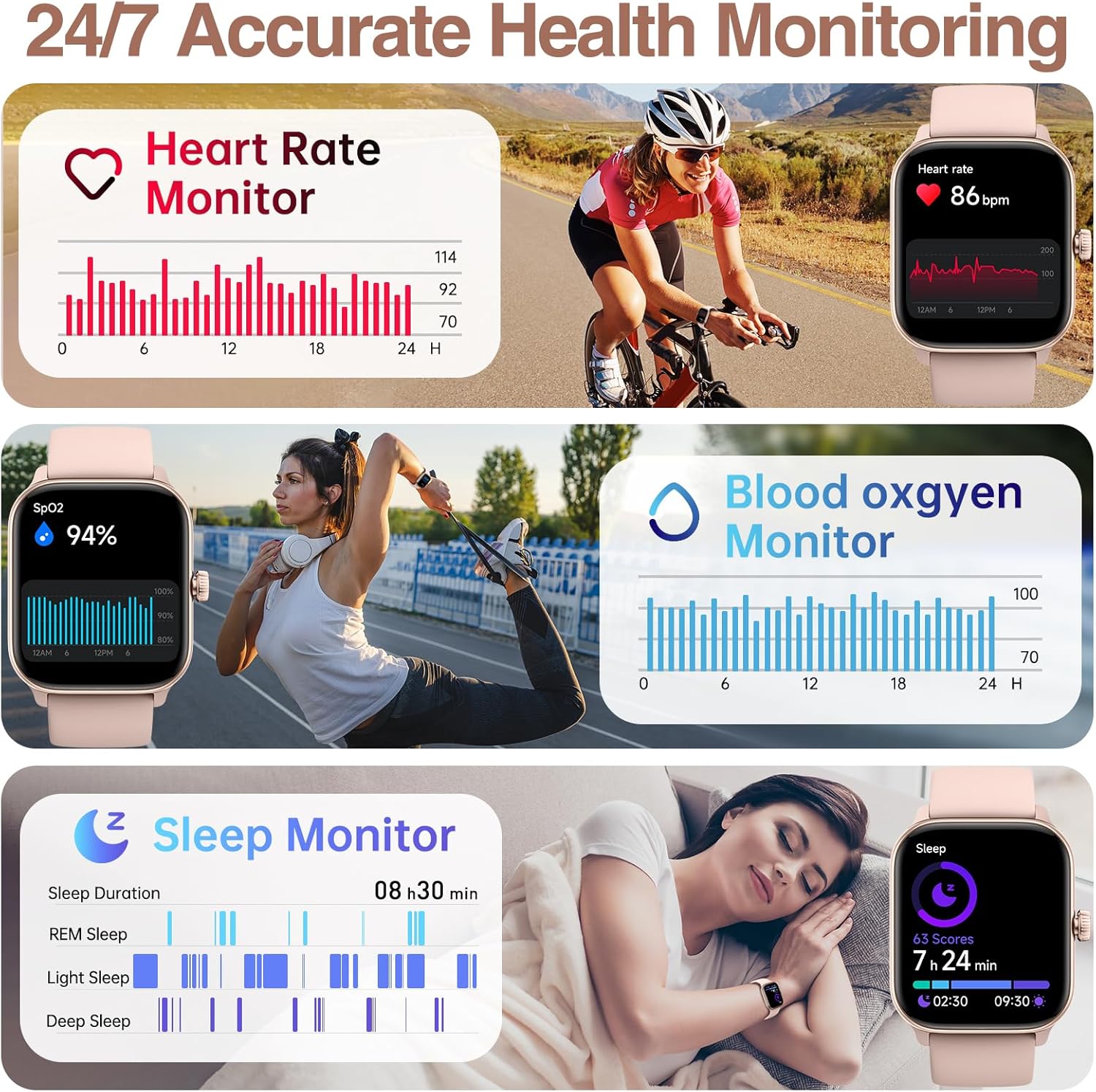 24/7 Health Monitor Sports Watch: The smart watches, as fitness tracker, come with over 100 built-in exercise modes and you can add your favorite ones via the VeryFit app, including walking, running, cycling, skipping, basketball, football and more. Our pedometer watch also contains heart rate sleep SpO2 step tracker and stress monitor and more. The android smart watch will accurately record your calories burned and distance traveled, helping you to fully understand and optimize your fitness performance.