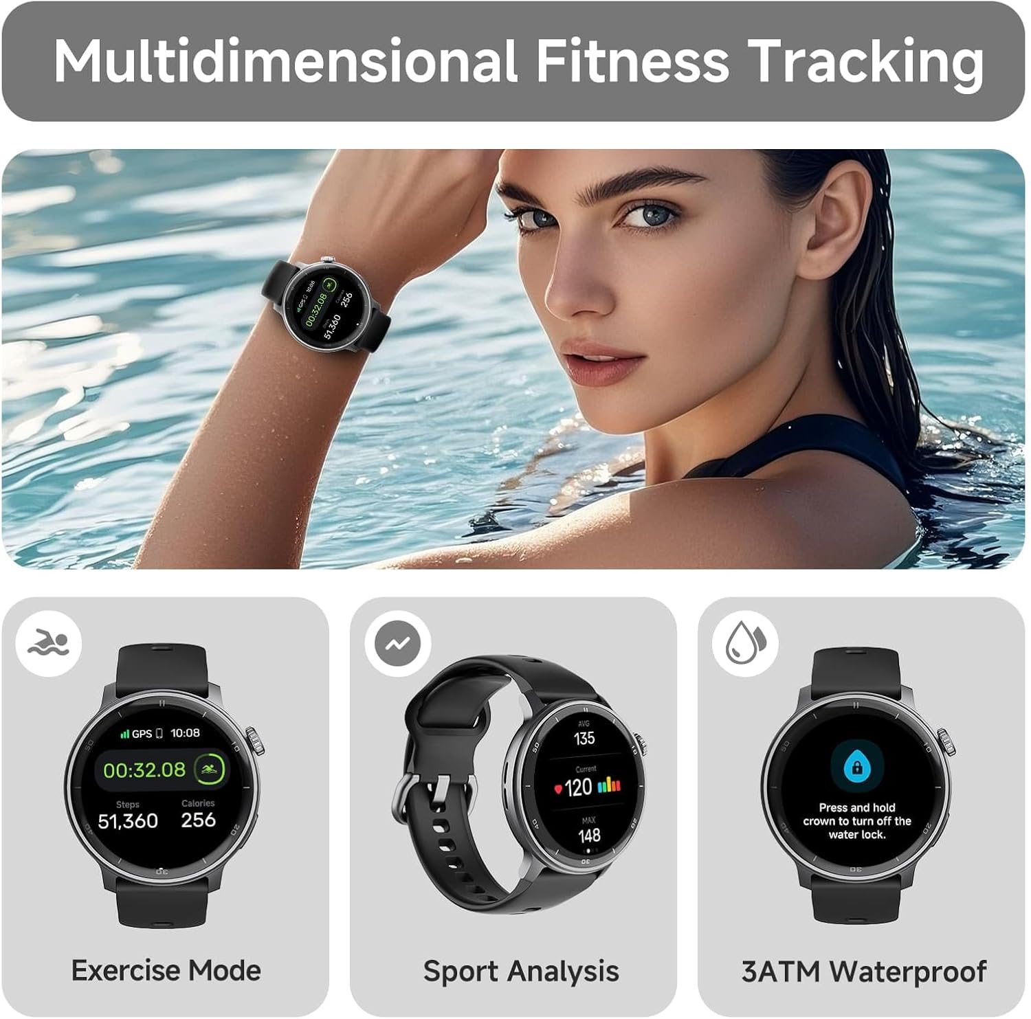 【Excellent Outdoor Assistant & Sport Tracking】This smart watch is with GPS built in and five-star dual-frequency positioning technology. It supports the four major global satellite navigation positioning systems available, and is also equipped with compass and altimeter sensor, allowing you to have precise routes even in outdoors and enjoy trouble-free journey. It offers extensive sports tracking across various activities, Such as running, yoga, swimming, mountain climbing and stair climbing, etc. It is 3ATM professionally waterproof and can be set to lock the screen underwater, making it indispensable for outdoor enthusiasts and fitness lovers.