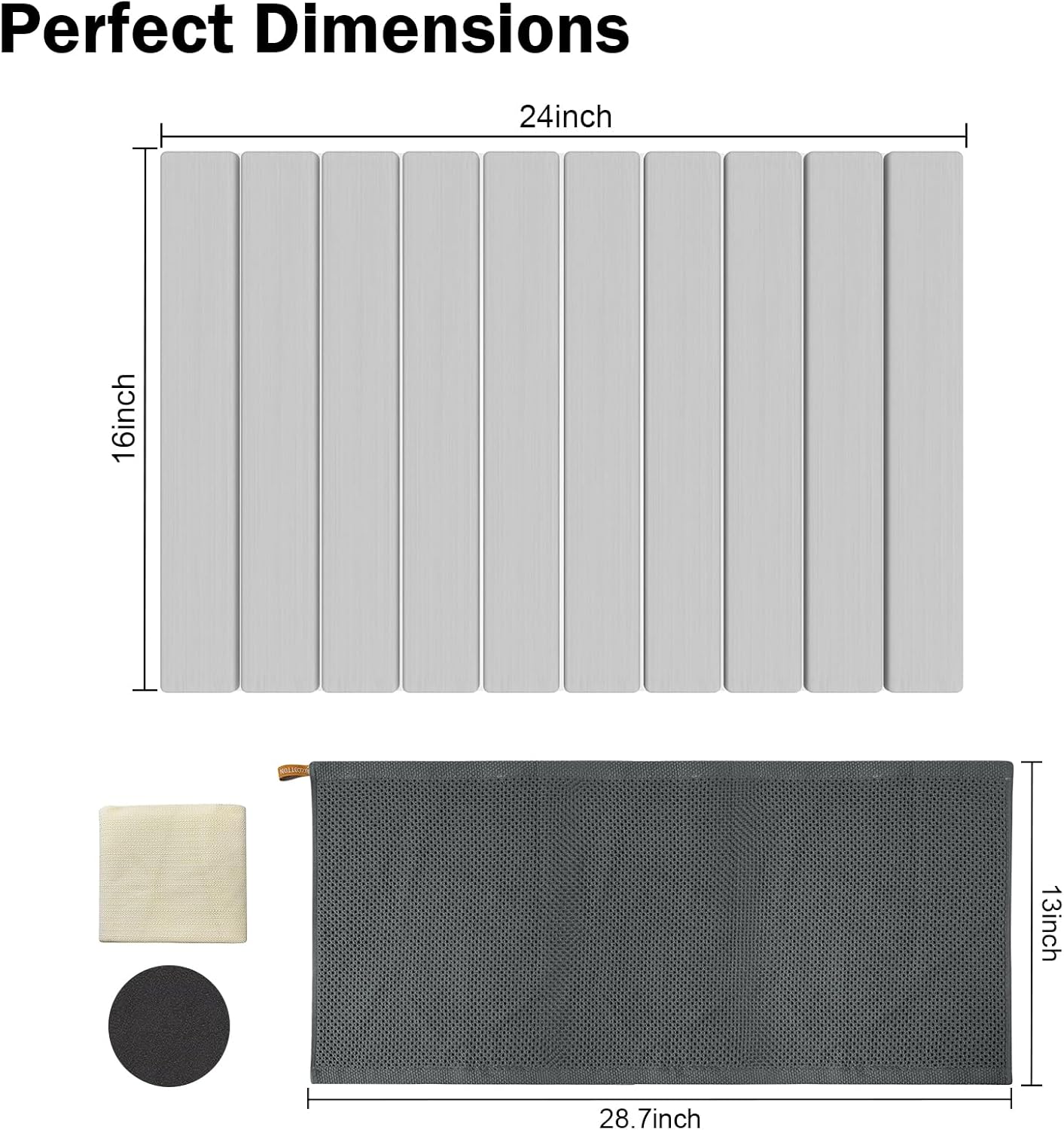 Stone Dish Drying Mat for Kitchen Counter,24″(L)×16″(W) Collapsible Fast-Drying Diatomaceous Earth Mats with Towel Sanding Tool,Versatile Stone Drying Mats for Cups Dishes Bottles