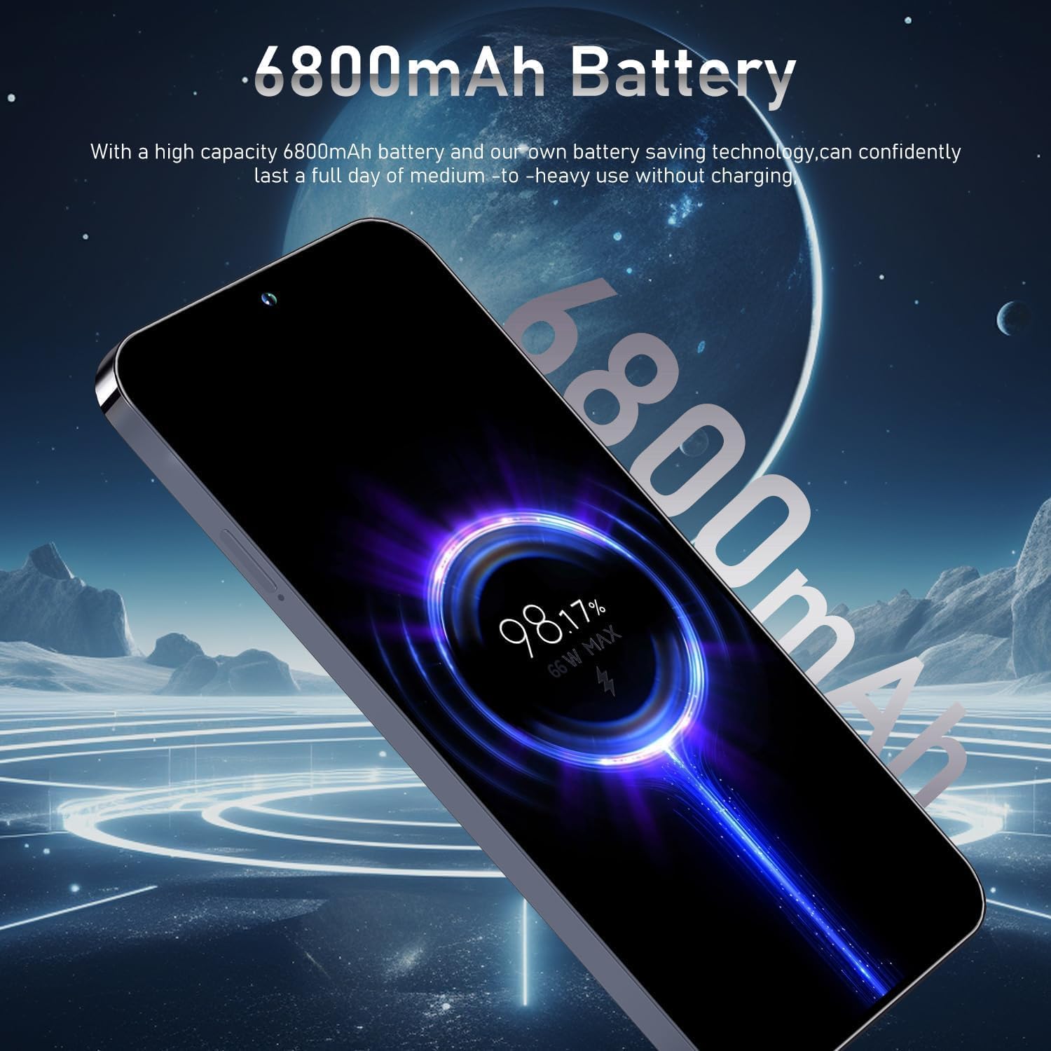 【6800mAh Battery & Fast Charging 】Equipped with a powerful 6800mAh battery, the battery life is super long, and you say goodbye to power anxiety. AI intelligent battery management can reduce excessive cache to save more power, thereby extending the standby time, and the standby time can meet your daily needs.