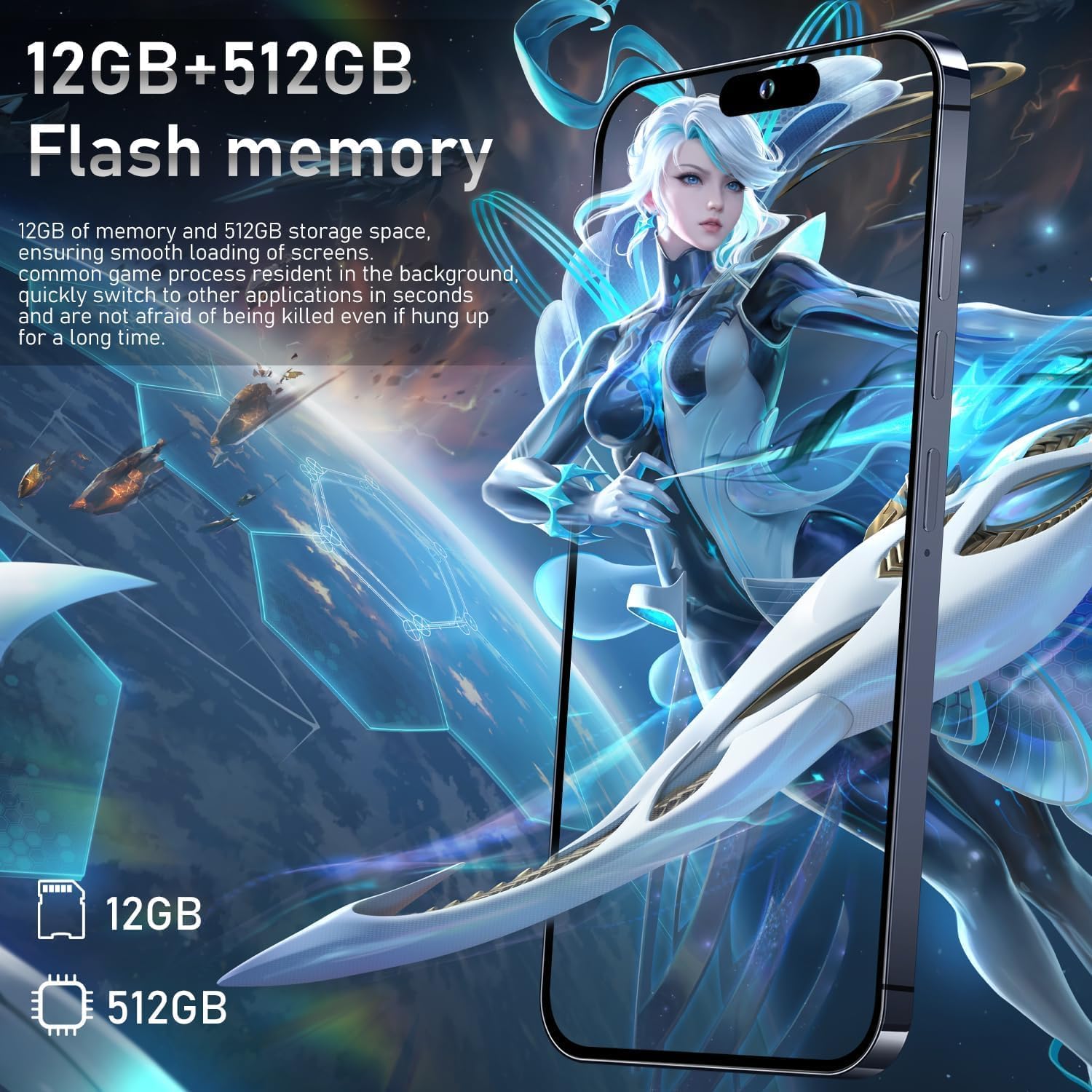 【12GB+512GB & Octa-Core CPU】Unlocked Android 13 mobile phone is equipped with large-capacity memory and storage space of 12GB and 512GB, allowing you to store more photos, videos and applications without worrying about insufficient space. Whether playing games, watching videos or working, it can run smoothly and bring you the ultimate user experience. With an 8-core processor, it ensures that the phone maintains stable performance during long-term use.