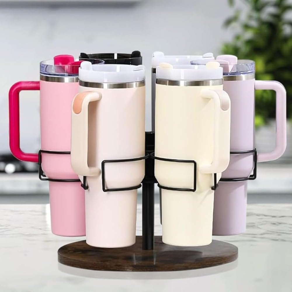 Rotatable Stanley Holder Design: Featuring a unique rotatable mechanism, this Stanley cup holder allows you to effortlessly retrieve your drinkware by simply rotating the 6-ring holder. Whether stored in a cupboard or placed on your kitchen counter, this practical organizer ensures your favorite cups are always within reach.
