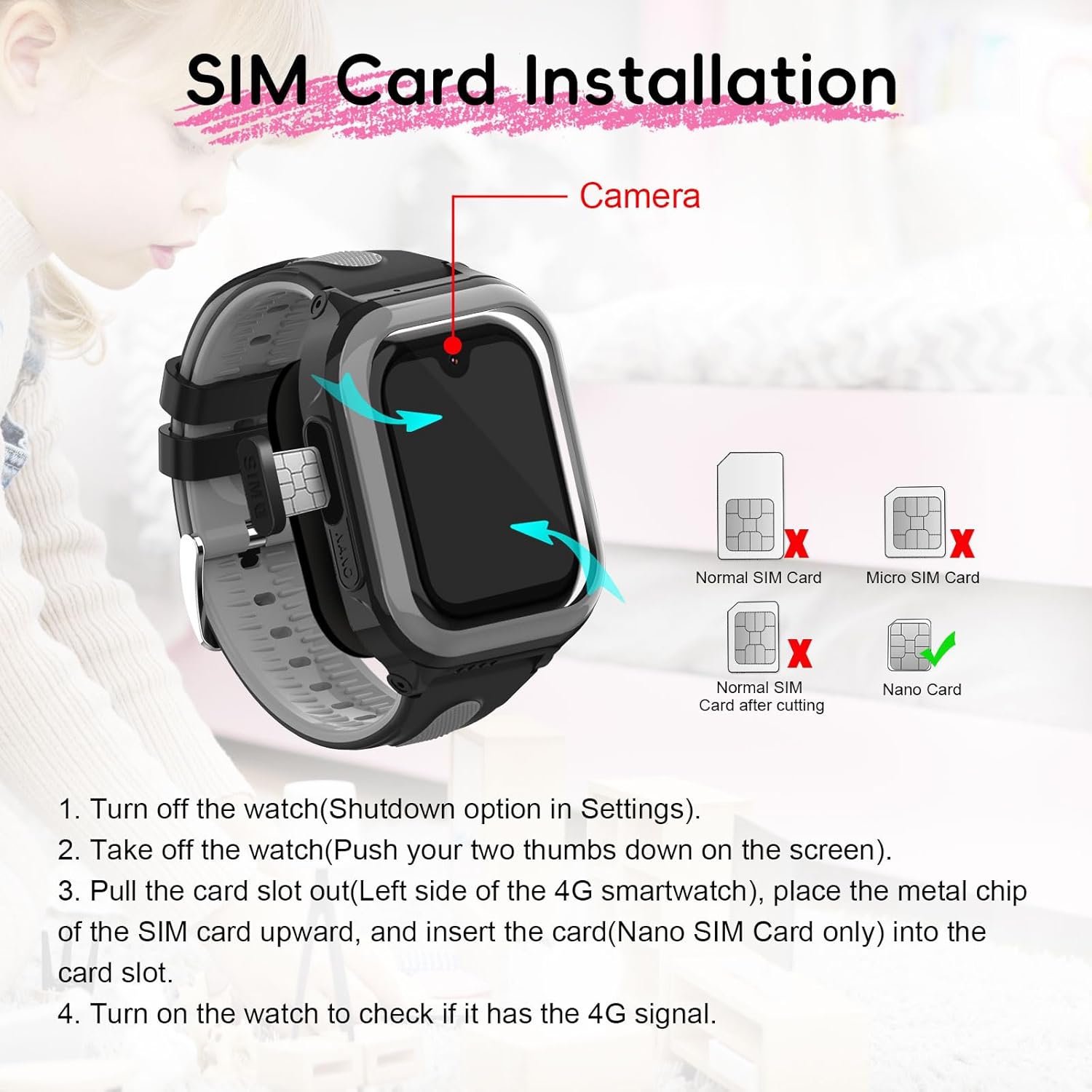 Wonlex smartwatch for kids with a front camera,kids can record their life anytime and anywhere,parents also remote take photos through APP by phone.